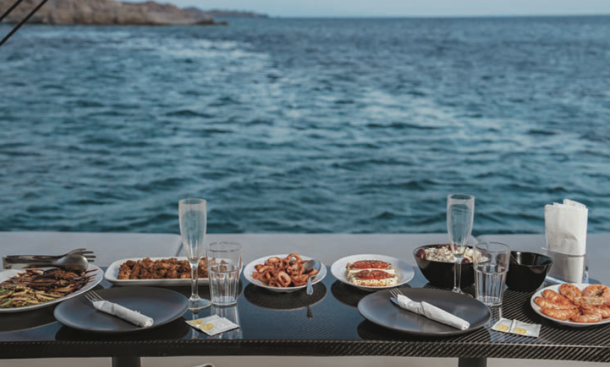 - Greek traditional food and fruit (included)